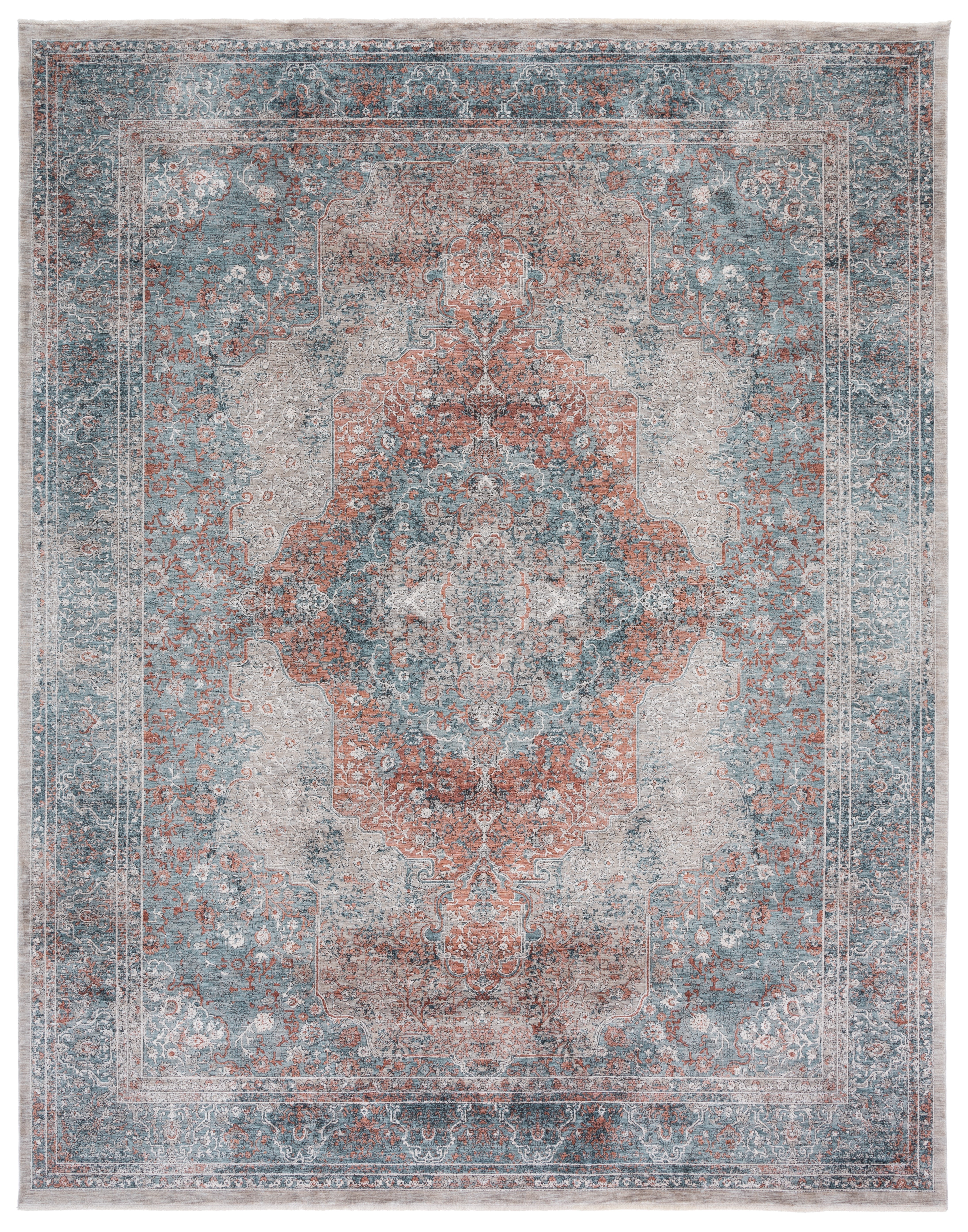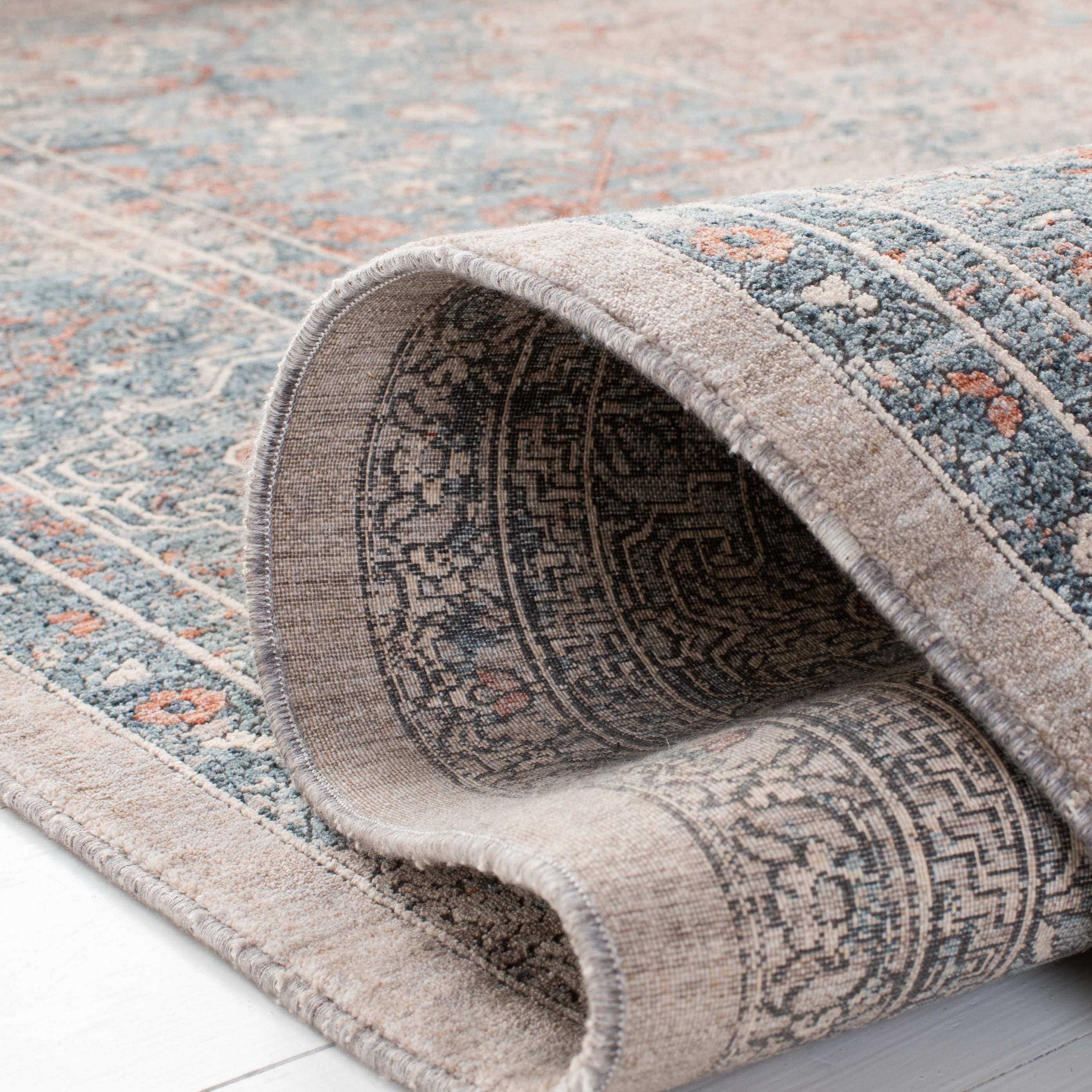 Adorning this rug is a captivating pattern featuring intricate motifs and floral elements, artfully distressed to merge modern design with classic beauty. The OEKO-TEX certification further ensures that every fiber is tested for harmful substances, providing peace of mind for you and your family.